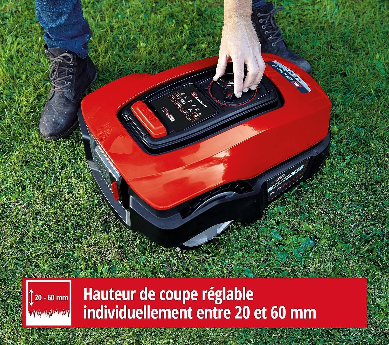 Ce modèle fait partie de la gamme Power X-Change d’Einhell, qui offre une grande flexibilité grâce à des batteries lithium-ion compatibles avec tous les appareils de cette gamme. Le FREELEXO 450 BT Solo est doté d’un système de batterie Power X-Change et peut être contrôlé et programmé via Bluetooth, soit à l’aide d’une application mobile, soit grâce à un pavé de commande convivial. Les horaires de tonte peuvent être programmés selon les jours directement depuis l’application.