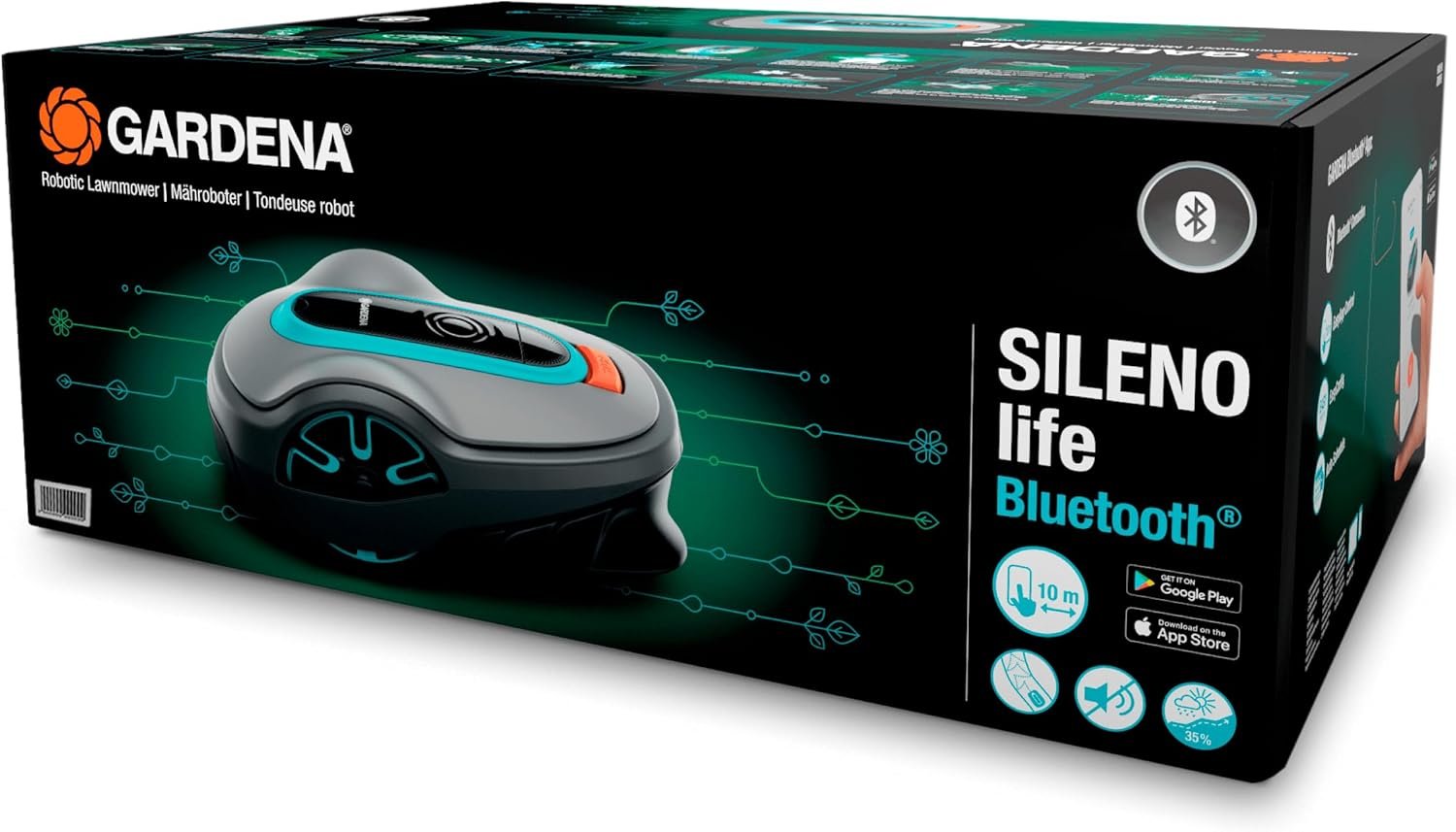 Avec le robot tondeuse SILENO Life 750, vous pouvez le piloter et le programmer à distance grâce à l’application GARDENA Bluetooth, disponible gratuitement sur iOS et Android. La programmation et le contrôle de votre robot n’ont jamais été aussi simples. Une fois le robot installé, vous pourrez définir les horaires de tonte selon vos besoins via l’écran LCD et l’application Bluetooth GARDENA.